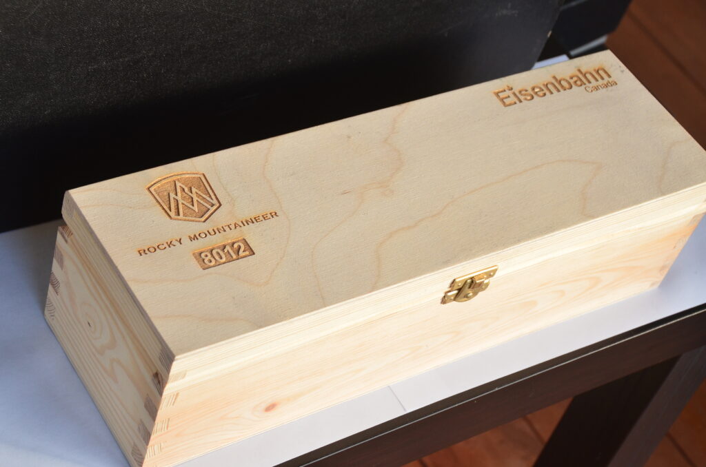 Road #8012. Created by model masters from Eisenbahn Canada European team. A fully rebuilt Overland diesel locomotive into this iconic Rocky Mountaineer GP40-2L New Livery. One of a kind collection. A must-have for your diesel collection. We made only one piece. Comes with wood presentation box. A lifetime chance for you.